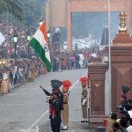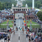 فاصله بین دروازه آزادی تا درب مرزی چند صدمتر است ولی چیزی که توجه تو را به خود جلب خواهد کرد صندلی‌هایی است که دو طرف چیده شده‌اند و این فضا را شبیه استادیوم کرده است، در فاصله‌ای نه چندان دور دقیقا همین فضاسازی را در خاک هند مشاهده خواهی کرد، ولی به راستی چرا مرز دو کشور این‌گونه طراحی شده است؟ برای یافتن پاسخ سوالت بایستی ساعاتی منتظر بمانی، هم‌زمان با نزدیک شدن غروب آفتاب سیل جمعیت را مشاهده می‌کنی که به سمت مرز کشورشان حرکت می‌کنند، آن‌ها برای عبور از مرز نمی‌آیند بلکه قرار است صندلی‌هایی که تعجبت  را برانگیخته بودند پُر‌کنند، اغراق نکرده‌ایم اگر بگوئیم حساس‌ترین مسابقات فوتبال جهان هم چنین شور و غرور حماسه آفرینی را خلق نمی‌کنند، همان‌طور که جایگاه حضار پر می‌شود صدای شور انگیز ترانه‌های ملی دو کشور به گوش می‌رسد و حضار با تمام توان نعره زنده باد را پس از شنیدن نام کشورشان فریاد می‌زنند.در سوی پاکستان که حضور داریم پرچم‌های سبز رنگی را مشاهده می‌کنیم که نشان از عشق مردم به ملک خداداد دارد و آن را با شوری وصف ناپذیر در فضا می‌رقصانند و فریاد الله اکبر سر می‌دهند.