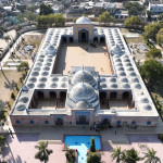مسجد پنج دروازه ورودی دارد که بزرگ‌ترین آن به نام دروازه مرکزی شناخته می‌شود، 94 ستون در ساخت مسجد به کار رفته است و 6 گنبد اصلی و بزرگ دارد که از دور جلب توجه می کنند. با این حال یکی از عجایب اصلی مسجد فقدان مناره هاست که در ساخت مساجد کمی نادر است. پیش از ورود به مسجد حوض بزرگی مشاهده می‌شود که طراوت خاصی به ساختمان آن بخشیده است.