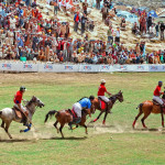تا زمان برگزاری مسابقه اگر فرصتی باقی باشد موسیقیهای مختلف به گوش میرسد و آئین تشریفاتی بسیار زیبایی برای آن انجام میشود از سویی تماشاگران فرصت کوهنوردی را از دست نمیدهند، همه اهل هیمالیا هستند و کوهنوردی به صورت مادر زادی در خونشان است. از آنجا که در این ارتفاع هیچ سیگنال موبایلی دریافت نمیشود، آرامش را در چهره تمامی تماشاگران مشاهده خواهیم کرد! ولی گرفتن تصاویر یادگاری و عکسهای سلفی رونق فراوانی دارد. حدود ساعت 11 صبح مسابقه آغاز میشود و نمایندگان شهرها و روستاهای شمالی به مصاف هم میروند، تشویقها چنان گرم و کوبنده است که ترس آن میرود اسبهای بازیکنان رم کنند و سوارشان را بر زمین بکوبند.